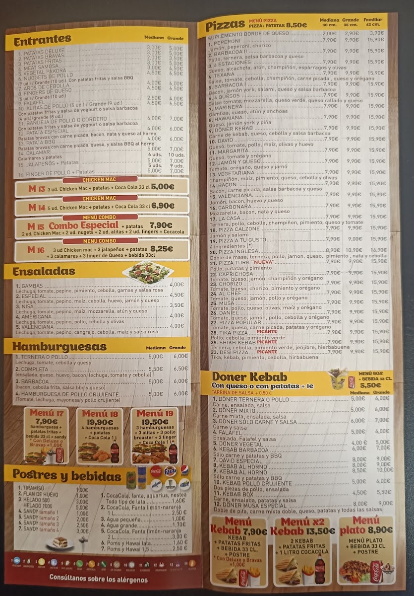 Welcome to David Pizzería Kebab Albal, the culinary gem nestled in the heart of Albal, Valencia. This vibrant eatery is famous for its mouthwatering kebabs and delectable pizzas, crafted to perfection. Whether you crave the succulent Chicken Mac or the hearty pizzas, you're in for a treat.